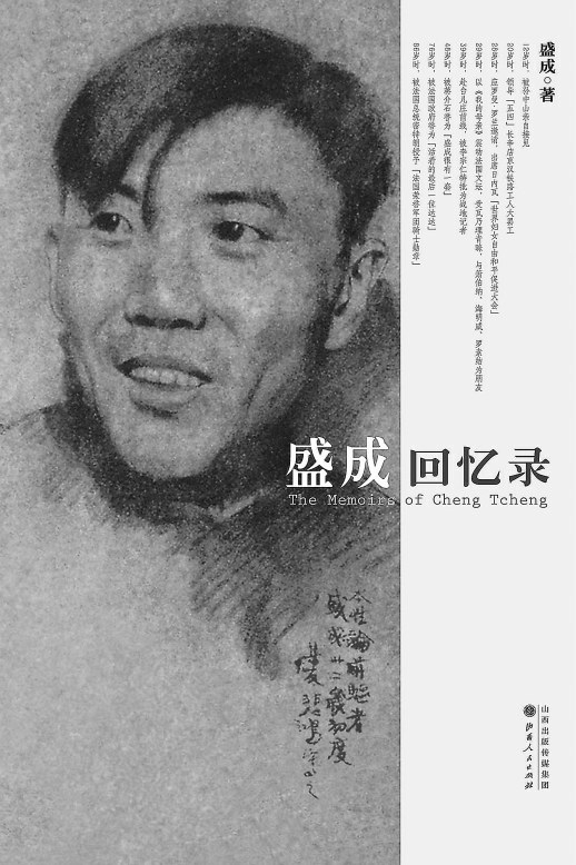 《盛成回憶錄》封面為徐悲鴻為盛成畫的素描肖像