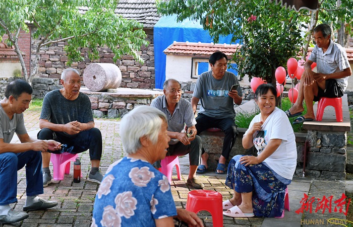 河南省林州市黃華鎮廟荒村,村民在小院聊天休閑。 湖南日報全媒體記者 徐行 攝