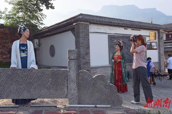 游客在河南省林州市黃華鎮止方村旅游“打卡”。當地傳統民居保存完整,每逢周末或節假日,吸引不少游客前來觀光。 湖南日報全媒體記者 徐行 攝