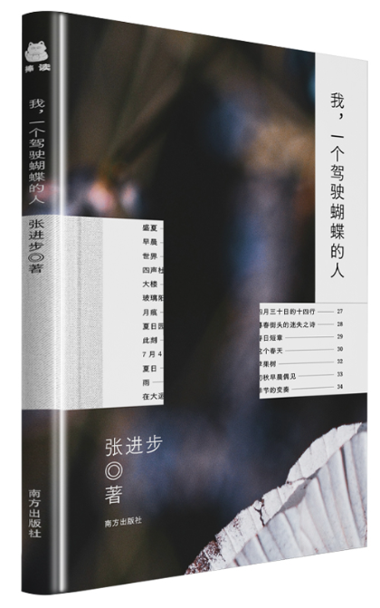 《我,一個駕駛蝴蝶的人》是詩人張進步的詩集,收錄了詩人創作的127首短詩、1篇詩學隨筆、1篇詩人專訪。內容分為“菩薩是一陣細雨”“意象戲劇”“世界和它閃光的部分”“秋夜七弦”四輯。