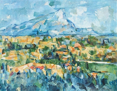 由此,塞尚、梵高、高更等藝術家的繪畫語言逐漸展現出不同于印象派的風格。塞尚在繪畫中拋棄了明暗和透視,尋求色彩與形狀的互相牽制,使畫面結構更加穩定嚴謹,制造出物與物之間的空間張力。他的油畫作品《圣維克多山》(見圖,曲音供圖)用冷暖色搭配勾勒出許多幾何形狀的色塊,形如房屋、狀似樹木,以相互交疊的視覺呈現替代了透視效果,暗示出遠近和前后關系,令畫面中的山峰無論從哪個角度觀看都顯得雄偉壯麗。