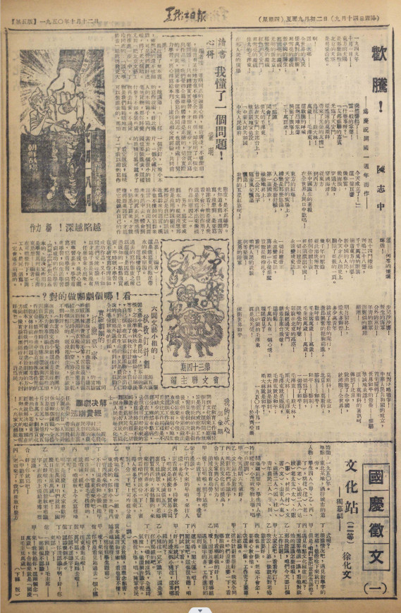 1950年10月12日《黑龍江日報·黑龍江文藝》創刊號第5版