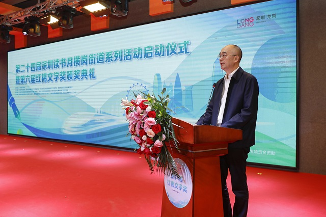 11 月 12 日上午,第六屆紅棉文學獎頒獎典禮暨第二十四屆深圳讀書月橫崗街道系列活動啟動儀式正式啟幕。文學大咖齊聚橫崗,與市民共赴一場文化盛宴,同時通過“深讀城市”論壇、經典詩文誦讀、“橫崗好人”頒獎等系列特色活動,帶領觀眾感受經典魅力和文學之美。中國作協黨組成員、副主席吳義勤,廣東省作協創研部主任周西籬,深圳市文聯黨組成員、專職副主席王國猛,龍崗區政協黨組副書記、副主席劉峰,區文聯主席林楠,橫崗街道黨工委書記劉慶以及省作協、市文藝創作中心、市作協、市評論家協會、龍崗區委政法委、區文聯以及橫崗街道等相關單位負責人出席活動。