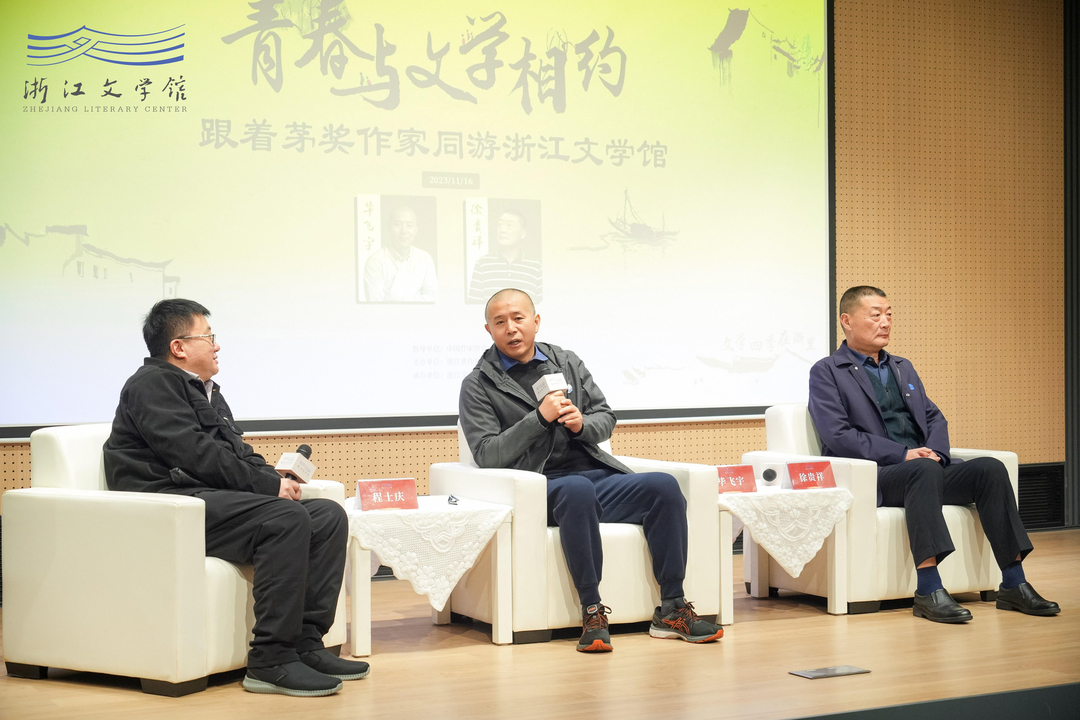 “青春與文學相約——跟著茅獎作家同游浙江文學館”是本屆茅盾文學周的首發活動,著名作家畢飛宇、徐貴祥來到浙江文學館,和學生們一起分享有關文學的故事、交流有關文學的看法。