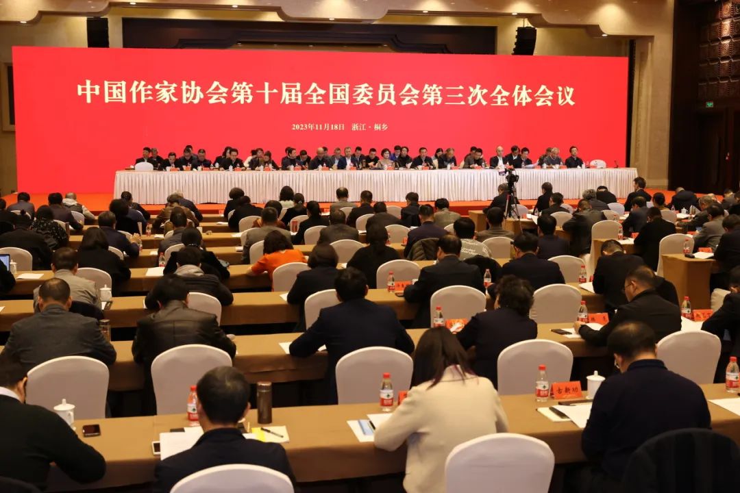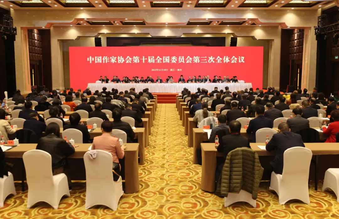 11月18日至19日,中國作家協會第十屆全國委員會第三次全體會議在浙江桐鄉召開。會議的主要任務是:堅持以習近平新時代中國特色社會主義思想為指導,深入學習貫徹習近平文化思想,認真落實全國宣傳思想文化工作會議精神,全面總結中國作協十屆二次全委會以來的工作,部署明年重點工作,奮力開創新時代作協工作和文學事業新局面,為全面建設社會主義現代化國家、全面推進中華民族偉大復興貢獻文學力量。