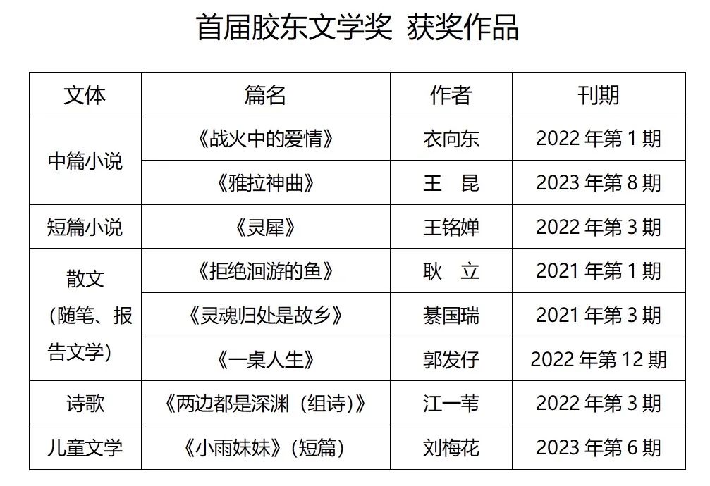 公示期間,如發現獲獎作品有不符合《膠東文學獎評選辦法》的情況,請向評獎辦公室反映。
