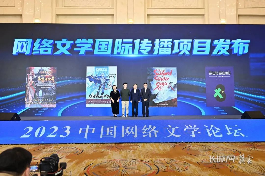 論壇開幕式上,“網絡文學國際傳播項目”正式發布。據悉,項目一期,中國作家協會遴選出《雪中悍刀行》《羋月傳》《萬相之王》《壞小孩》4部作品,使用英語、緬甸語、波斯語、斯瓦西里語4個語種,通過在線閱讀、廣播?。ㄓ新晞。?、短視頻、推廣片4種方式,向全球進行推介?,F場播放了海外讀者視頻、《萬相之王》波斯語廣播劇制作視頻、《羋月傳》緬甸語對外推廣片、《雪中悍刀行》英語推介片,生動展示了網絡文學國際傳播項目成果。