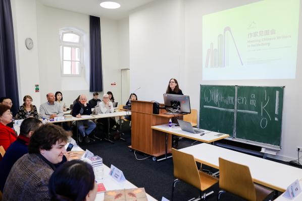 海德堡大學是德國最古老的大學,建于1386年,是德國浪漫主義與人文主義的象征,也是歐洲最重要的學術中心之一。在海德堡大學孔子學院外方院長丁蕾(Petra Thiel)博士主持下,范穩、徐坤和弋舟分別介紹了自己的創作經歷,以及各自作品中關于歷史、文化的想象和探索。海德堡大學亞洲與跨文化研究中心中國研究所所長芭芭拉·米特勒教授、亞洲與跨文化研究中心"創造世界"項目研究員兼博士后薩拉·蘭達博士、南亞研究所馬丁·及瑟曼博士等參與文學對話,并介紹了他們關于中國文學、亞洲文化、中德文化交流等相關領域的思考與設想。海德堡大學的青年學生踴躍向3位中國作家提問交流?;顒蝇F場,漢學家呂海粟等還當場表示了想翻譯弋舟短篇小說《出警》等作品的意愿。中國作家們還向海德堡大學圖書館贈送了簽名圖書,受到圖書館館長的熱烈歡迎。