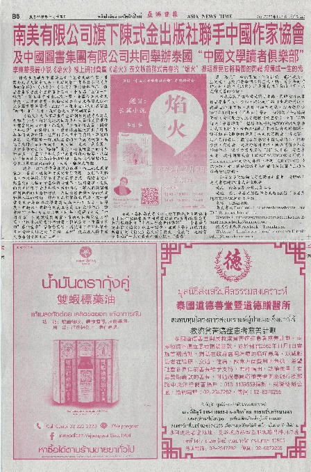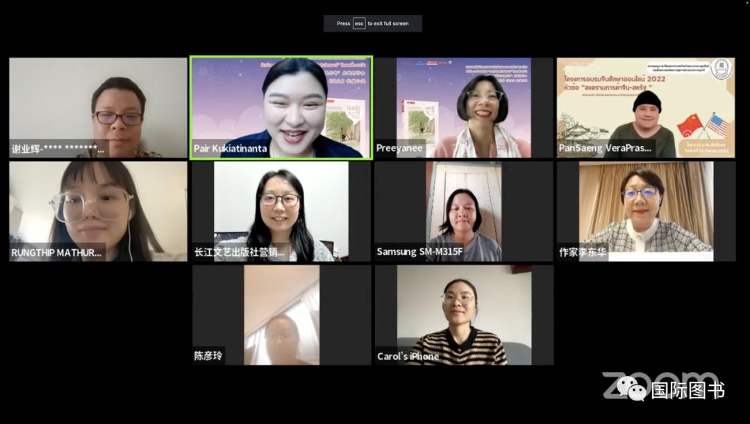 12月9日,由中國作家協會外聯部指導,中國圖書進出口(集團)有限公司聯合泰國南美書局舉辦了2023年泰國“中國文學讀者俱樂部”活動——李東華作品《焰火》泰文版首發式暨閱讀分享會。泰國陳氏金出版社社長陳美琪、編輯盧伊惠,南美語言學院、泰國達叻男子中學學校漢語組學生以及泰國漢語教師等30多人在線參加。