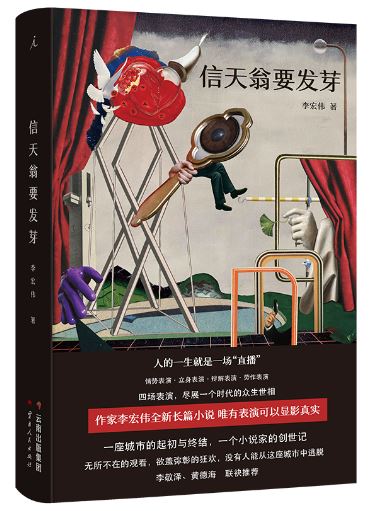 《信天翁要發芽》是作家李宏偉 長篇小說。全書采用獨幕劇的形式,由“情勢表演”“立身表演”“辯解表演”“勞作表演”四場表演構成,多聲部層層推進,一切演出始終處于濃密得近乎暴力的窺看中。一座城邦與一座叢林,構建起兩個互相指涉的虛擬世界。無所不在的觀看,欲蓋彌彰的狂歡,四場表演展演出一個城市的編年史及其眾生世相,是多維藝術的小說裝置,亦是窮形盡相的人世劇場。小說以奇異的想象與狂歡化的景觀,講述一個關于死亡與生長、瘋癲與恐懼的人類故事,書寫我們自身的光陰與命運、勞作與時日,構筑出一個小說家的“創世記”。
