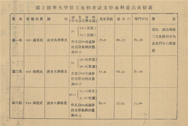 國立清華大學留美??瓶荚囌螌?谱罡叱煽儽?/span>