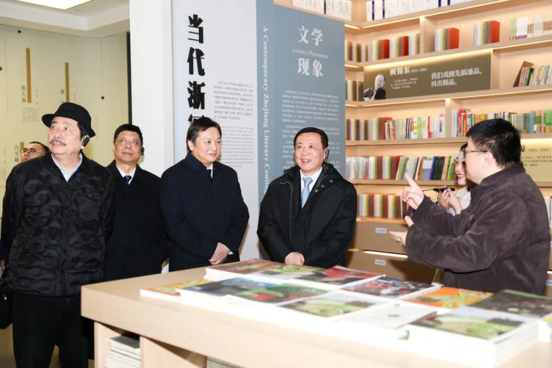 隨后,張宏森一行考察調研了“浙水敷文——浙江古代文學”展廳、宋韻浙江經典作品場景體驗廳、現代浙江經典作品場景體驗廳、文學數字應用體驗廳和兒童文學體驗廳。