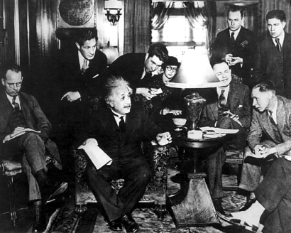 愛因斯坦到達上海那天,前往碼頭歡迎他的人群中,有德國駐上??傤I事悌爾,日本改造社職員、國際聯盟日本協會總干事稻垣守克以及眾多記者。郵輪停穩后,愛因斯坦未及下船,一些迫不及待的記者即上船對他進行了采訪。其間還有記者向埃爾莎問及關于相對論的話題,以及她眼里的愛因斯坦是一個怎樣的人等問題。埃爾莎坦陳自己不懂相對論。關于她丈夫是怎樣的人,她說他和其他男人一樣,愛抽煙,還會把煙灰彈在地毯上。她的回答把大家都逗笑了。