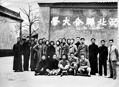 西北聯合大學學生在校名影壁前合影。 資料圖片