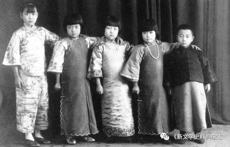 張愛玲《對照記》中的圖八,是1928年張家從天津回上海時,張愛玲和三個表姐一個表弟的合影。