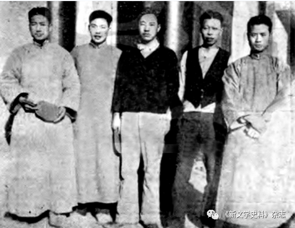 其實她和蔣仁宇的淵源也許可以追溯到更早一些,他們中學時代是孔德學校的前后同學,蔣仁宇生于1908年前,即20年代孔德學校的“蔣仁?!?。他寫于1934年的一篇文章中提到“我自小學到大學,永是和一個法文學校發生關系”,這個法文學?;究梢哉J為就是教授法文的北京孔德學校。1925年出版的《北京孔德學校旬刊合訂本》第二輯封面就是“十年級蔣仁裕繪”的木炭畫,蔣仁裕同時還是運動健將,尤其是乒乓球。合訂本內還有一則體育部報告,1925年12月10日,十年級與北京師范比賽乒乓球,15∶3,孔德學校勝??椎鲁錾淼膶W生乒乓球水平不低,1929年初北平的報紙上就有一張“北平冬季球類比賽乒乓優勝隊”的照片,如下圖,左一錢三強、右一蔣仁裕,中間的則是周作人長子周豐一。雖然沒有注明圖中五位所屬的學校,但除了左二的傅詢克暫時無法確定外,其余幾位都是孔德學校的,周豐一生于1912年,錢三強生于1913年,右二的金國光生于1906年。