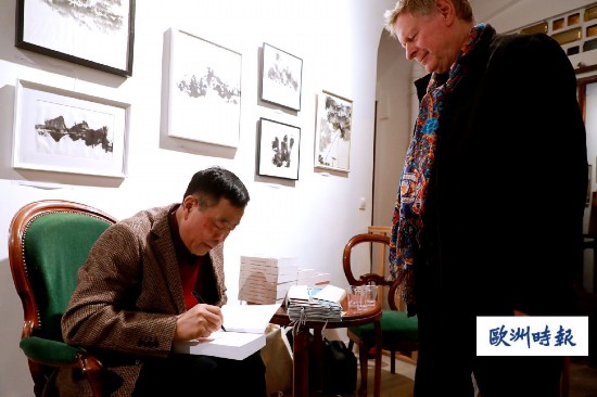 首發儀式上,法國中國文學讀者紛紛與楊志鵬進行交流,楊志鵬則為法國讀者一一簽名贈書。當晚,還舉行了興安、艾米的水墨畫展,為現場增加了更為濃郁的中國文化元素氛圍。