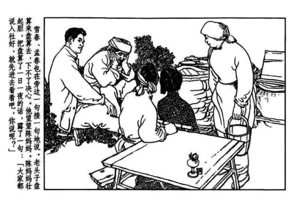 誰知他回到上海美術出版社時,畫稿卻被社領導否定了。他既委屈又不服氣,又返回益陽清溪村,進行第二次更專注的創作。清溪村的鄉親們熱情地歡迎這位大畫家重返故地采風。他一次次地被大山里這群熱情的新農民感動。他夜以繼日地精細線描,描繪農村農民的真實生活,描繪他們日日夜夜的辛勞,繪出時代色彩。