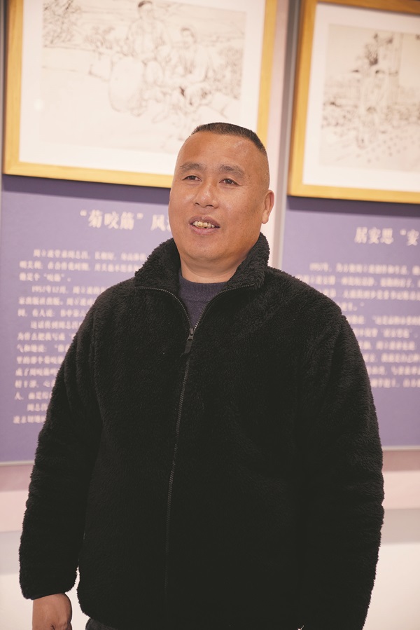 “為人民創作、為時代放歌?!睍菡醒?,周立波卷起褲腿,在田間地里勞動之余小憩的照片,生動詮釋了這10個字的內涵。作為書屋講解員,卜雪斌每每都會將游客攏在這幅畫像前,自豪地介紹“老鄉”周立波與清溪村的故事。他一口夾雜益陽口音的普通話,時不時逗笑遠道而來的眾人?!拔矣闷胀ㄔ捴v《山鄉巨變》,來這里的游客大多都了解,可能也就愛買不買;但用益陽話講《山鄉巨變》的故事,讀者聽得可有滋味了,就覺得非買不可了。那我這個‘貨’就帶成功了?!辈费┍笮χf。