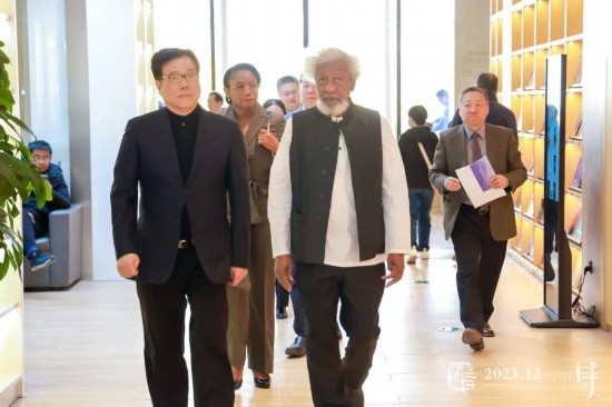 十二月四日,我再一次送別了索因卡??粗泶┧{色對襟衫的熟悉身影漸漸遠去,我卻并不傷感,雖然這次已屆鮐背之年的索因卡甚至沒有像上次那樣,和我說“期待下次再見”。因為我知道,在阿貝奧庫塔的密林中,重新當回獵人的索因卡必會快樂地延續他的文學傳奇人生,而他在上海留下的足跡和音聲則將繼續施惠于我們,讓我們即使與他相隔萬里,仍可隨時叩響他的智慧心門,聆聽這位非洲世紀老人的深邃思想,并且不斷推動中國與非洲兩大文明走向互相理解與欣賞的光明未來。