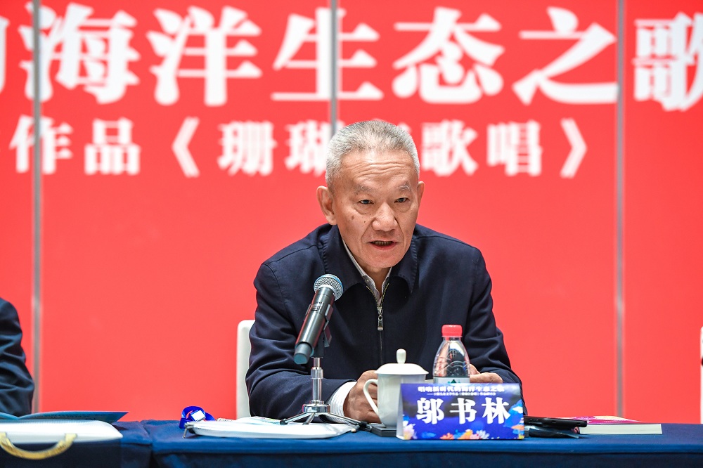 鄔書林在講話中表示,《珊瑚在歌唱》是一本思想性、知識性、文學性、趣味性都非常出色的兒童文學作品,通過對珊瑚的描寫,作品講清了人與自然的復雜關系,在孩子們心中播下了生態文明的種子。這部作品也具有很嚴謹的科學性,由專業學者擔任顧問、把關內容,有助于精準引導孩子掌握科學知識,樹立生態保護意識。談及出版工作如何高質量發展,鄔書林表示,放眼世界,好的作品一定是學術共同體的產物,要把知識性、科學性、思想性和文學性很好地結合起來,這是世界現代文明帶給我們的重要啟示。