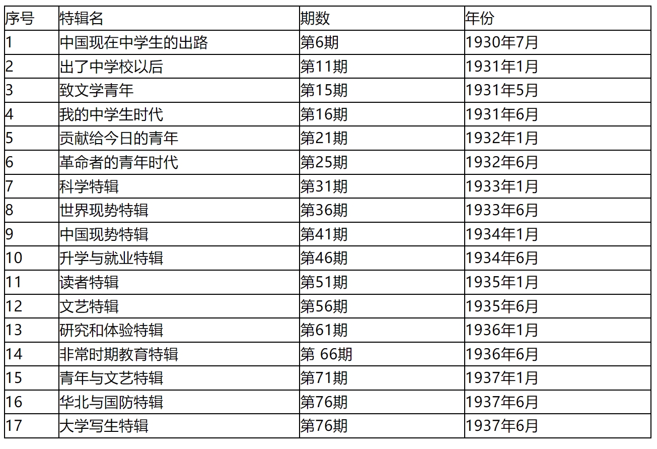 與1937—1949年的歷史互為表里,《中學生》“特輯”如下: