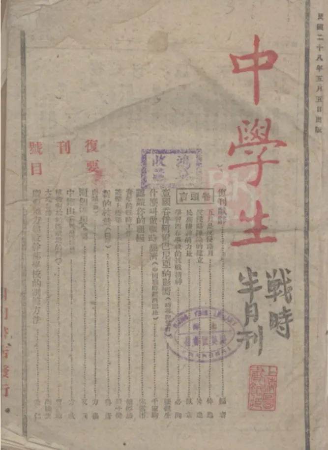 [25]《復刊獻辭》,《中學生戰時半月刊》,1939年5月5日復刊號。