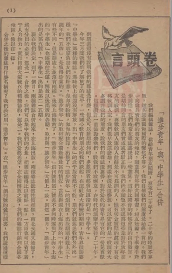 [39]《〈進步青年〉與〈中學生〉合并》,《中學生》1949年第215期。