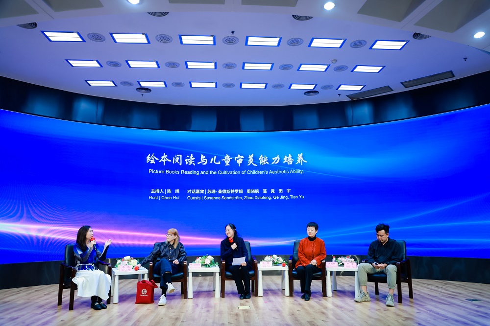第二場對話圍繞“繪本閱讀與兒童審美能力培養”展開。主持人陳暉表示,童書體現的不僅是文字的美,更是思想的美和對世界的期待,“美是陪伴人一生的,重要的是讓孩子學會感受美、發現美”。田宇分析了文字在繪本創作中的重要作用。他認為,文與圖的巧妙配合是成就一部優秀繪本的關鍵。蘇珊分享了瑞典繪本針對不同年齡段兒童采取不同風格的經驗,表示繪本和文字書各有所長,要相信兒童自身,不同年齡段的兒童會有不同的閱讀體驗。周曉楓分享了兒童文學和繪本跨界創作的經驗,她表示,繪本不是簡化的文學,凡是能提高孩子對世界的感知、發現自身不足、勇敢面對困難的能力的書都有價值,不存在高下之分,并且很多少兒繪本對成年人同樣具備感染力。葛競談到,孩子閱讀繪本過程中會表現出種種反應,需要被肯定、被贊美,從而激發其探索事物內在關聯的能力,獲得審美的經驗,這是繪本能夠帶給孩子審美體驗的重要動因。