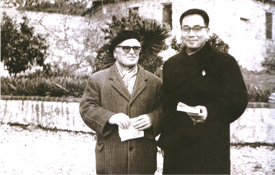鄭恩波作為《人民日報》記者代表團團員兼翻譯訪問阿爾巴尼亞費里區,與雅科夫·佐澤(左)合影留念 1974年12月3日攝