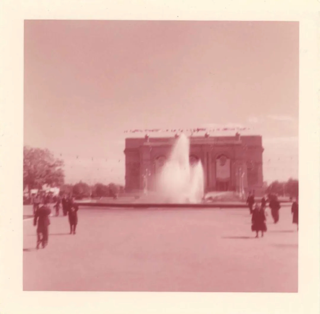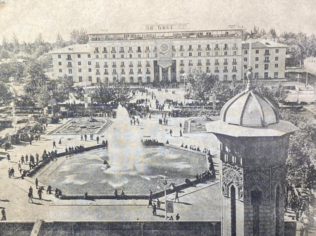 我們一走下飛機,就給熱情的蘇聯朋友們包圍起來……在熱鬧聲中,我偷眼看了看機場:是一個極大極現代化的飛機場。大型的“圖-104”飛機在這里從從容容地起飛、降落。候機室也是極現代的高樓……汽車開進城去,是寬闊潔凈的柏油馬路,兩旁種著高大的樹。樹蔭下是整齊干凈的人行道。馬路兩旁的房子差不多都是高樓大廈,同莫斯科一般的房子也相差無幾。中間或間雜著一兩幢具有民族風味的建筑。只有在看到這樣的房子的時候,我心頭才漾起那么一點“東方風味”,我才意識到現在是在蘇聯東方的一個加盟共和國里。[29]