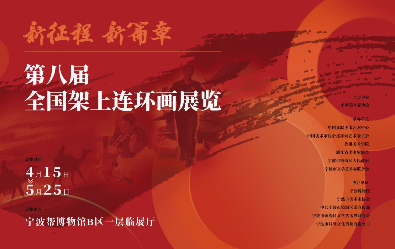 4月15日,由中國美術家協會主辦,中國文聯美術藝術中心、中國美協連環畫藝委會、魯迅美術學院、浙江省美協、寧波市文聯、寧波市鎮海區人民政府承辦,寧波博物院、寧波市美協、中共寧波市鎮海區委宣傳部、寧波市鎮海區文聯、寧波市科導文化科技有限公司協辦的“新征程 新篇章——第八屆全國架上連環畫展覽”在浙江寧波幫博物館隆重開幕。