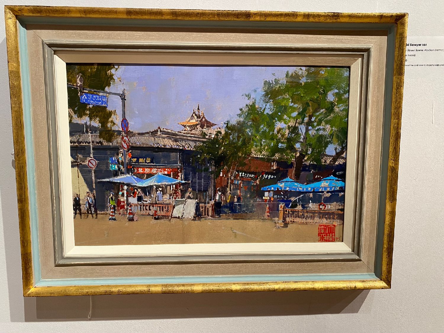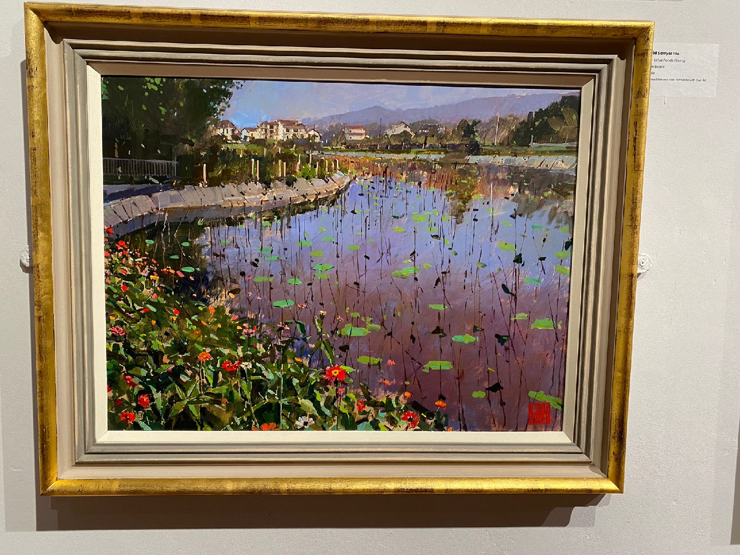 此外,展覽上有繪制故宮、頤和園、重慶郊外荷花池等五幅中國元素的作品引人注意,這是由英國著名現代印象派畫家大衛·索亞(David Sawyer)所作,他是英國皇家藝術家學會會員、切爾西藝術協會會員,作品多次獲獎,并被英國皇室和多家機構收藏,曾作為官方巡回藝術家隨查爾斯王儲(現查理三世國王)夫婦出訪加勒比地區。