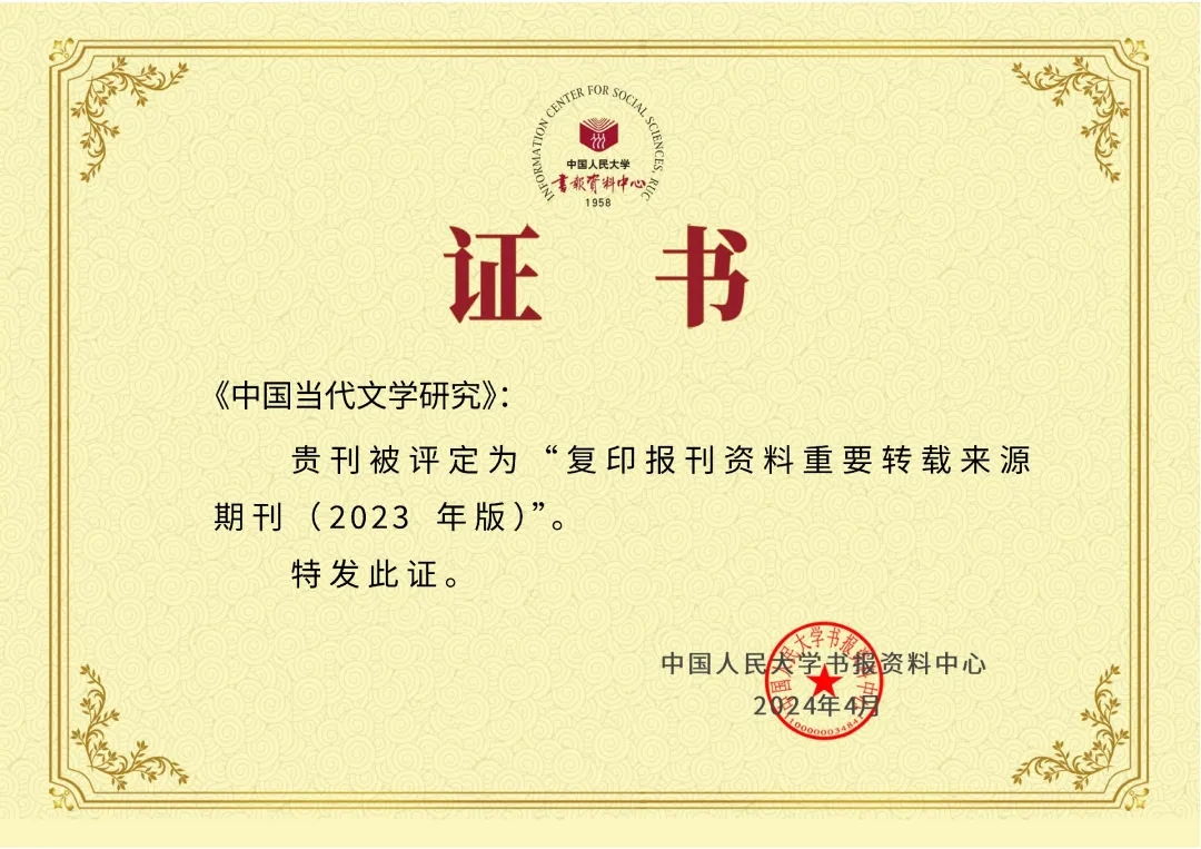 《中國當代文學研究》入選“復印報刊資料重要轉載來源期刊(2023年版)”