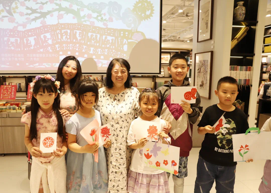 在作者和主持人瑩瑩老師的幫助下,孩子們發揮奇思妙想,用靈巧的小手將自己喜歡的事物,剪成一個個充滿童趣、獨一無二的作品,展現了一個個精彩紛呈的童話世界。劉雪純現場剪了花朵、小貓等剪紙,送給孩子們作為母親節的禮物。