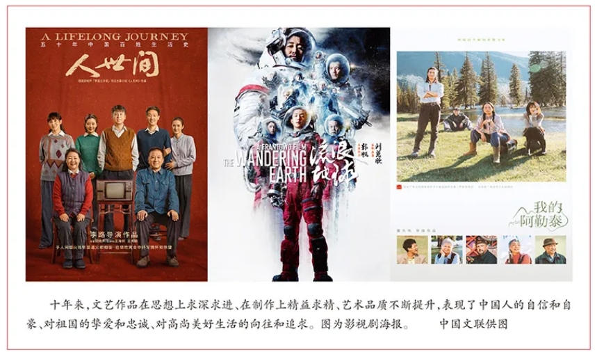 這是主旋律文藝作品在思想上求深求進、在制作上精益求精、藝術品質不斷提升、表現亮眼的十年。電視劇《覺醒年代》召喚追求真理、燃燒理想的澎湃歲月,《山海情》表現山海相連、守望相助的社會主義制度優越性,《人世間》對工人階級精神風貌進行了史詩性的開掘,《大江大河》再現改革開放的壯闊歷史,《我的阿勒泰》呈現了綠草如茵、山河斑斕、人間有情、民族相親的北疆大地……在一部部文藝作品中,人們從生命的深處領會到把我們緊緊團結和凝聚在一起的信念:作為中國人的自信和自豪,對祖國的摯愛和忠誠,對高尚美好生活的向往和追求,這是我們共同的家園,是我們共同奔赴的遠方。樂舞、吟詠和歌唱,辭章和故事、圖像和影像,新時代的中國人從多姿多彩的文藝作品中分享共同的情感、共同的價值觀。培根鑄魂、啟智潤心,弘揚中華文明以詩教人、以文化人的傳統,培育和倡導全體中國人民共同的價值追求和精神認同。這正是新時代文藝根本的社會責任之所在。