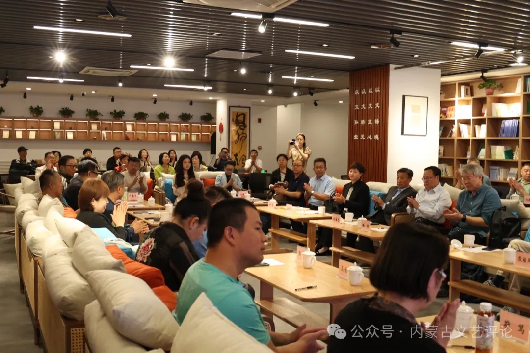 內蒙古文聯副主席、內蒙古文藝評論家協會主席、內蒙古藝術學院院長趙海忠,呼和浩特市文聯主席云巧堂出席并致辭。內蒙古文聯原主席、著名作家特·官布扎布,北京大學中文系副教授、北京大學新詩所研究員、北京作家協會副主席臧棣,《十月》雜志編輯、著名詩人江汀,內蒙古評論家協會副主席王宏偉,呼和浩特市文聯黨組成員、副主席王新文,《草原》雜志社長助理、呼和浩特詩詞學會主席蔣靜,呼和浩特市文聯原黨組成員、副主席田明,評論家鄢冬、敬篤、殷福軍、楊瑞芳及詩人溫古、冰風、李文俊以及相關文藝工作者、文學愛好者70余人參加會議,會議由內蒙古評論家協會副主席、呼和浩特市評論家協會主席劉志忠主持。