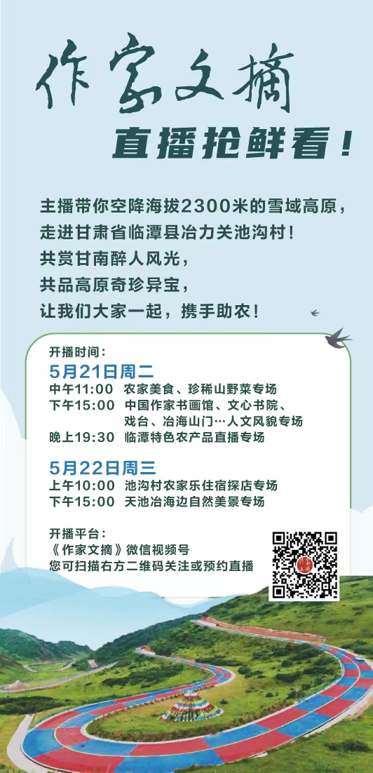 為響應中國作家協會定點幫扶工作號召,中國作家出版集團所屬文學出版單位與社會愛心力量組成慰問幫扶小分隊,將于5月21日-5月22日在甘肅臨潭開展“文學助力鄉村振興·臨潭行”活動。