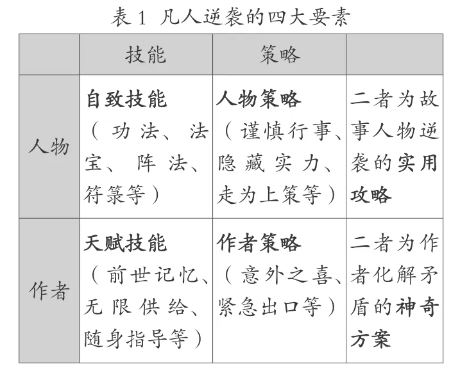 《凡人》中,出身強勢宗門、世家大族的少部分人占據、享用修仙世界的大部分資源,可以出生就走捷徑,大部分人窮其一生都被困在山底,修仙成了他們向上攀爬的唯一繩索。這正是“凡人修仙”故事的吸引力所在:一個資質平平的普通人,如何通過各種努力來實現自身地位的躍遷?在傳統武俠中,主角的逆襲一般憑借美德(俠義之心)和機緣,且機緣的降臨通常以美德為前提,例如《射雕英雄傳》里的郭靖。而在男頻修仙網文中,光靠美德是不夠的,凡人逆襲既靠故事人物逆襲的“實用攻略”(包括自致技能與人物策略),也靠作者化解矛盾的“神奇方案”(包括天賦技能與作者策略)。前者強調故事主角對自身命運的掌控,后者則強調創作者對敘事的操縱。在二者的助力下,主人公克服倦怠、擺脫內卷,從而實現跨越式發展。