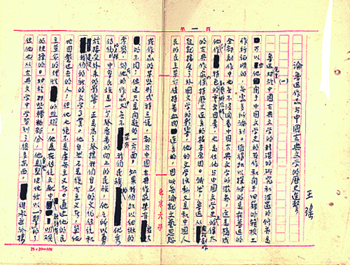 《論魯迅作品與中國古典文學的歷史聯系》手稿(1956年)