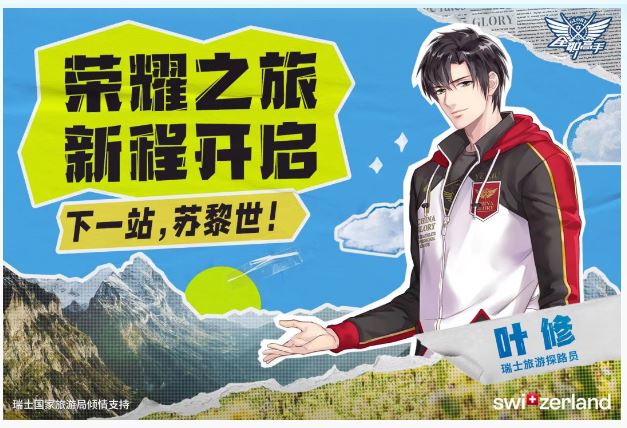 5月29日,閱文集團攜手瑞士國家旅游局共同宣布,將發起“全職高手:25年相約蘇黎世計劃”,開展為期一年的深度海外文旅營銷活動,其中,《全職高手》主角葉修還將擔任2025年“瑞士旅游探路員”,這一天也是葉修的生日。