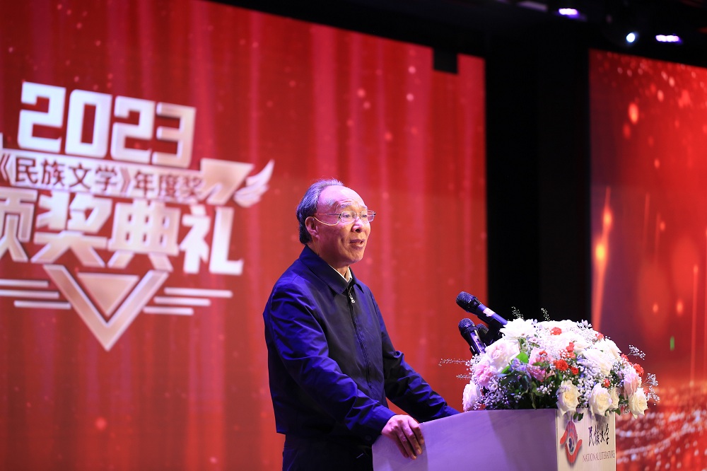 陳亞軍在致辭中談到,《民族文學》創刊四十多年來,始終秉持發展繁榮少數民族文學、團結少數民族作家、培養少數民族文學新人、促進民族團結進步的辦刊宗旨,以鑄牢中華民族共同體意識為主線,以構筑中華民族共有精神家園為己任,推出了大量優秀作品,培養了大量創作人才,相當一批少數民族文學名家大家從《民族文學》起步,走向全國乃至世界。她祝愿作家們以此次獲獎為新的起點、新的動力和新的激勵,以新視野、新境界,以超越的雄心、突破的勇氣和創新的手法,用情用力講好中國故事,描繪新時代城鄉崛起、山鄉巨變尤其是各族人民的嶄新精神風貌,向世界展現可信、可愛、可敬的中國形象,為實現中國式現代化貢獻少數民族文學力量。