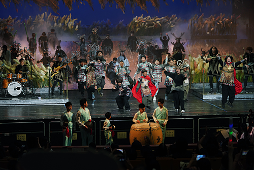 《詩經海?!酚伞洞T鼠》《關雎》《木瓜》《氓》《小星》《北門》《有蛇》《無羊》《桃夭》《蒹葭》《采薇》《無衣》《鹿鳴》《伐木》等14首孩子們精心挑選的、能映照他們當下生活和狀態的《詩經》篇章,經創作改編與串聯,組成其主體戲劇段落。作為該團“古籍與我”系列的第6部作品,該劇延續了系列作品用當代視角重敘中國古典文學故事的創作理念,通過古老的智慧與少年之間跨越時空的思想碰撞,映照與反思當今孩子們的生活。劇中融合了一人一故事、即興、偶戲、面具等多種戲劇表達形式,現場伴奏由中央民族樂團少年團和新疆奧古孜樂隊共同完成。聲音方面,該團劉小白(14歲)任音樂總監,劉諾一(14歲)、范小凡 (14歲)擔綱音樂創意,徐希好(15歲)任AI音樂制作,劇中15首戲劇配樂及4首原創曲目均由團隊成員共同協作完成。全劇以富有代表性的民間旋律賦予作品獨特的演繹方式與情感表達,在傳承民族傳統的同時呈現出當代舞臺藝術的特點與新意。