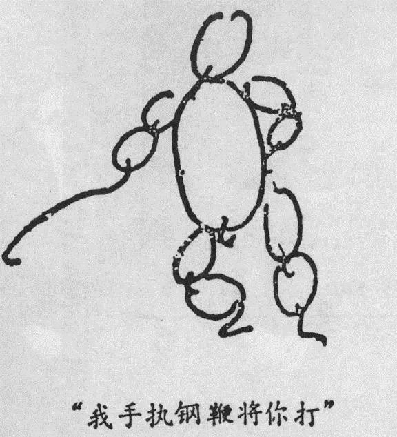 1933年2月上旬,瞿秋白第二次來到魯迅家中避難。瞿秋白對魯迅的著作素有研究,他撰寫1.7萬字的《〈魯迅雜感集〉序言》,是研究魯迅的重要文獻。瞿秋白對魯迅的代表作《阿Q正傳》,也有深刻的見解。這次避難中,瞿秋白繪制了兩幅關于阿Q的漫畫。其中,《我手執鋼鞭將你打》,堪稱既抽象又寫意“阿Q漫畫”,整個人物由10個大寫的英文字母Q,巧妙構成,包括頭、身體各一個,四肢各兩個,共10個,構思獨出機杼,造型夸張傳神,令人莞爾。畫面左邊,前臂上的一個Q字,其一撇特別長,略有彎曲,形似鋼鞭,非常契合小說中阿Q的唱詞:“我手執鋼鞭將你打……”又可看作主人公阿Q臨終簽字畫押的那個沒有畫圓的“圈兒”。整幅漫畫線條簡潔,想象奇特,妙趣橫生。