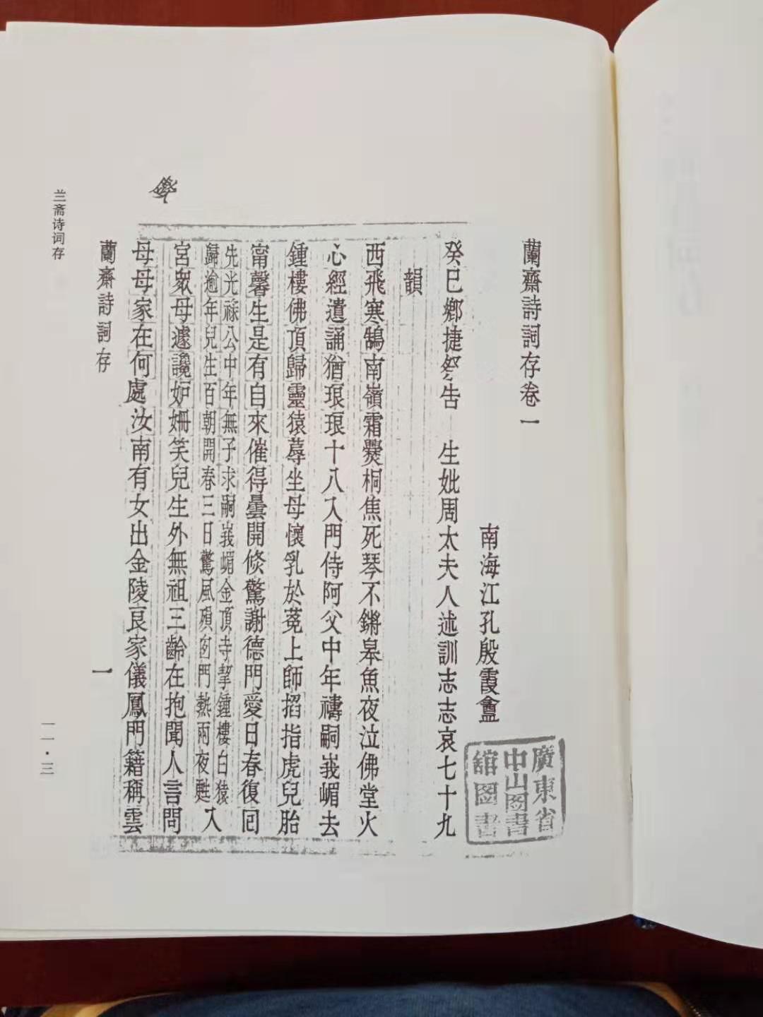 《蘭齋詩詞存》首篇《癸巳鄉捷祭告生妣周太夫人書訓述志哀七十九韻》,相當于以生母周氏為中心的一部“家傳”。為掩飾年齡造假,江孔殷創作該詩時,可能有意搞亂時間順序。全詩頗長,本文摘引時不按原詩順序,需要該詩全文者,請參閱《民國稿抄本》影印本或原稿。