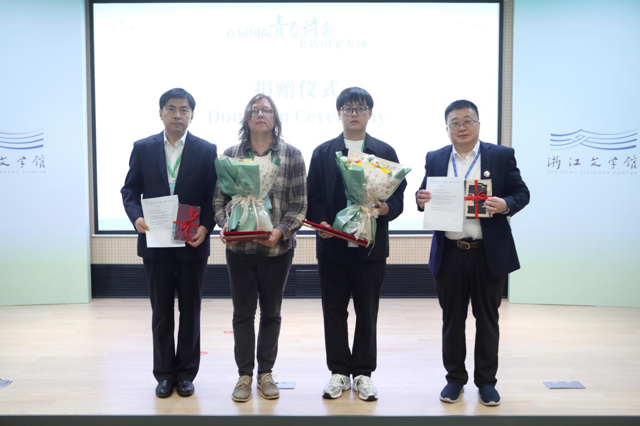 會上,中國詩人代表呂周杭、其他金磚成員國詩人代表安德烈·切爾卡索夫共同向中國現代文學館、浙江文學館捐贈詩歌手稿。王軍與浙江文學館館長程士慶為青年詩人代表頒發捐贈證書。