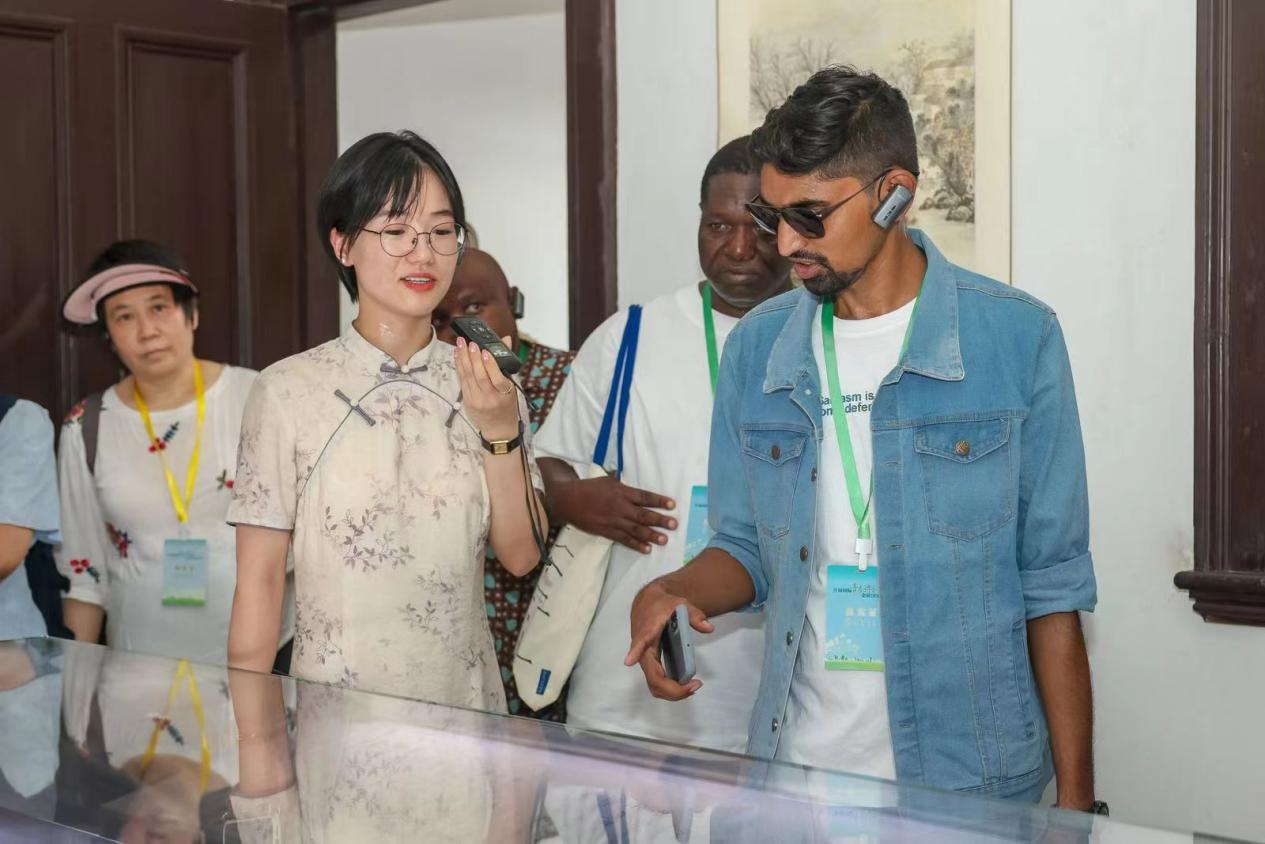 會后,中外青年詩人們一起參觀了浙江文學館與浙江省非遺館。浙江文脈源遠流長,自古才人輩出。浙東唐詩之路、錢塘江詩路、甌江山水詩路、大運河詩路,這四條詩路是唐代詩人往來頻繁、對唐詩發展有著重大影響的文化古道,單是“浙東唐詩之路”上留存至今的就有1500多首唐詩。謝靈運、白居易、李白、杜甫、蘇軾,許多耳熟能詳家喻戶曉的大詩人來自浙江或與浙江有深厚的緣分,在此地留下傳世名篇。在白居易的介紹文字前,巴西詩人西達·佩德羅薩驚嘆:“白居易,我知道這位詩人!”可見,白居易的詩句在巴西也受到廣泛傳播與喜愛。白居易也是南非詩人沃納尼·比拉十分熟悉的一位中國詩人,沃納尼在林波波大學擔任英語講師,他告訴記者自己十分欣賞中國傳統詩歌:“它的結構短小而緊湊,卻又是那么精妙和復雜?!倍勂鹦略?,他說最了解的當屬毛澤東詩詞,“毛是一位了不起的詩人”。中文名為“易寧”的俄羅斯詩人伊萬·阿列克謝耶夫目前就讀于北京師范大學文學院,對中國文學的了解可以說非常深入,他順理成章地擔任起“教學”和“翻譯”重任。在現代文學經典場景展廳,他一直向同行的俄羅斯詩人熱情介紹魯迅,在文創店,他興奮地指著相關文創產品喊住朋友們:這是魯迅!