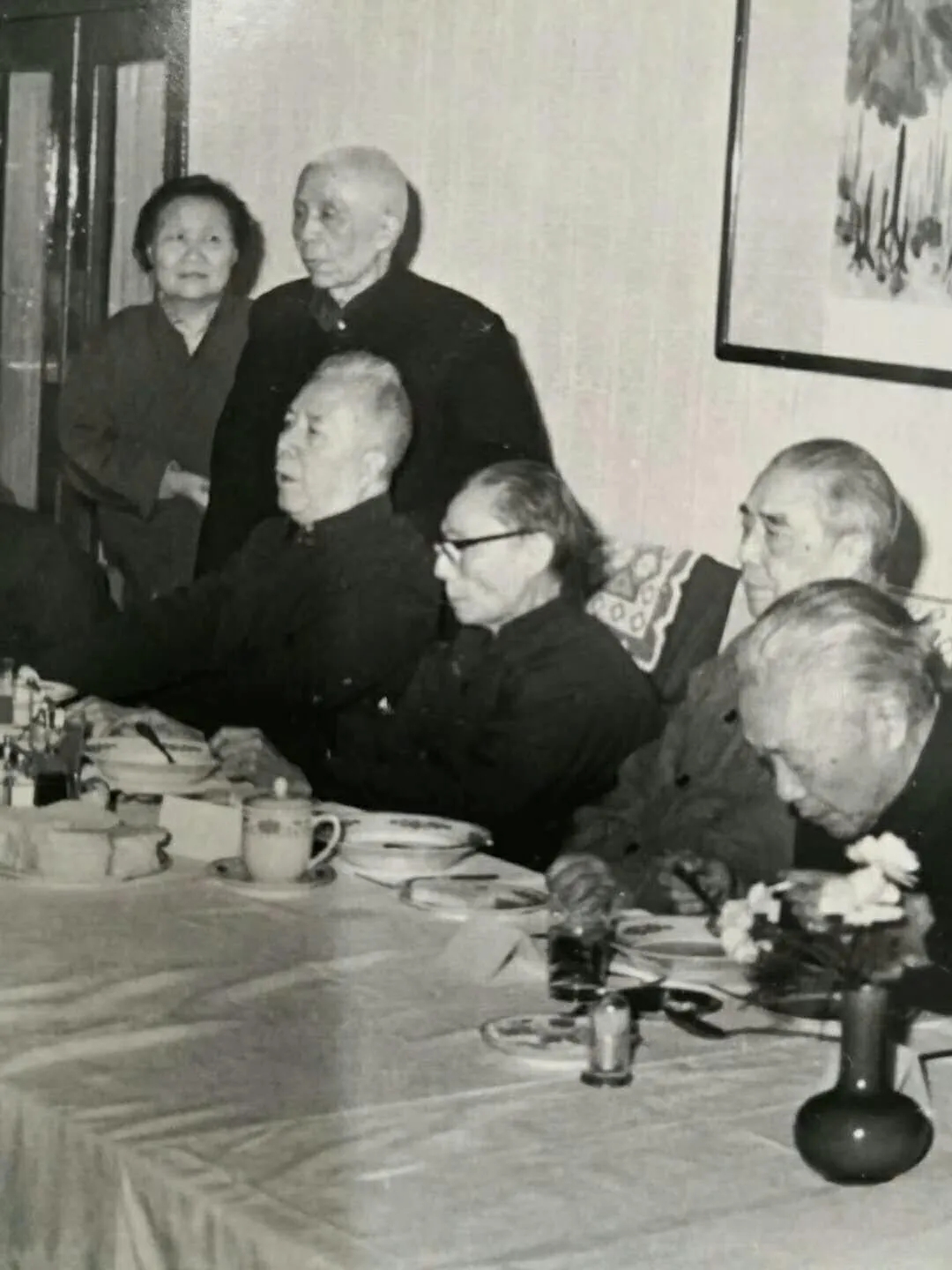 右起:陳白塵、陽翰笙、夏衍、周揚、田漢弟弟田洪夫婦(作者供圖)
