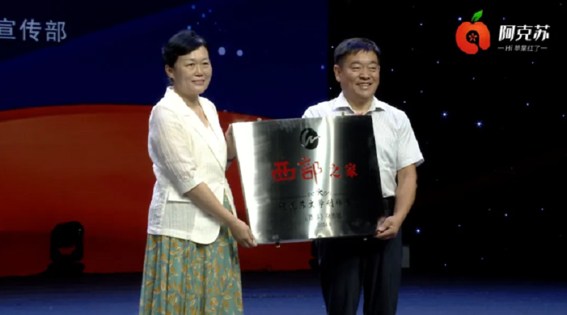 頒獎典禮最后,進行了“西部之家·阿克蘇文學創作基地”授牌儀式,由《西部》雜志社主編張映姝授牌,阿克蘇地區文聯黨組成員、副主席,作協主席何興華接牌。
