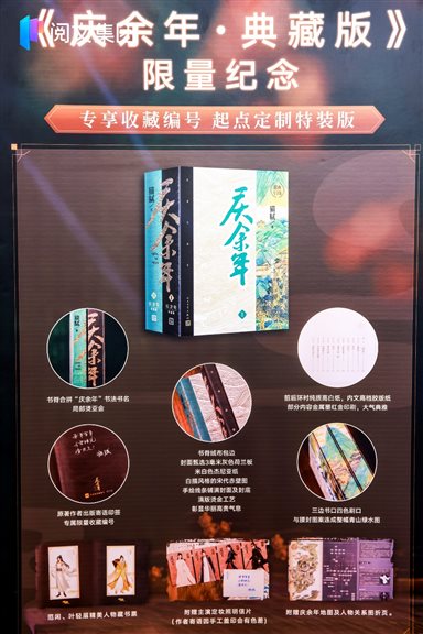 此次書展,由閱文獨家定制的《慶余年典藏版》限量紀念套裝正式首發(人民文學出版社出版)。書籍設計工藝精美,配有作者出版寄語印簽、專屬限量收藏編號,同時附贈精美人物藏書票、電視劇主演明信片、慶余年地圖折頁,以及起點讀書App、騰訊動漫App線上用戶權益。據了解,《慶余年第二季》播出后,起點讀書的原著閱讀量提升了38倍。IP影視化再次帶動了原著的火爆。